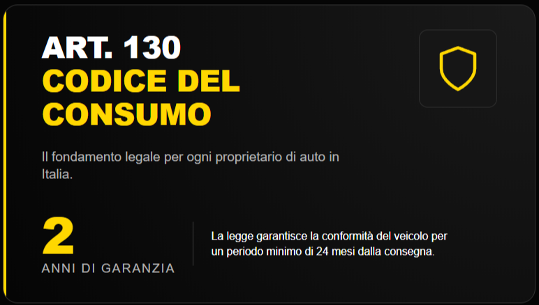 Perché è nato questo mito: I concessionari preferiscono negare tutto automaticamente per evitare controversie. Ma la legge italiana (Codice del Consumo) protegge il consumatore – onere della prova è sul venditore.