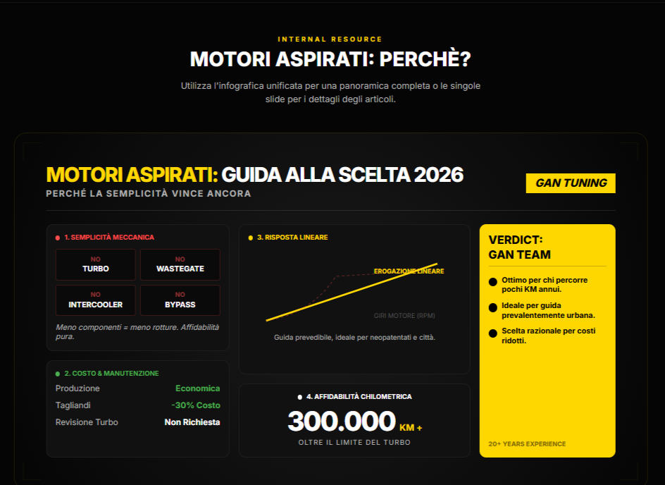 Il team GAN con oltre 20 anni di esperienza conferma: aspirati sono scelta razionale per chi percorre pochi km annui, guida prevalentemente in città, vuole costi ridotti.