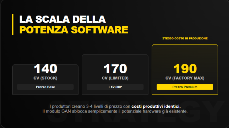 La passione automobilistica italiana apprezza le prestazioni, ma anche la concretezza. GAN risponde con ingegneria tedesca, garanzie finanziarie (€5.000 sul motore), e 50 giorni di test-drive senza rischi.